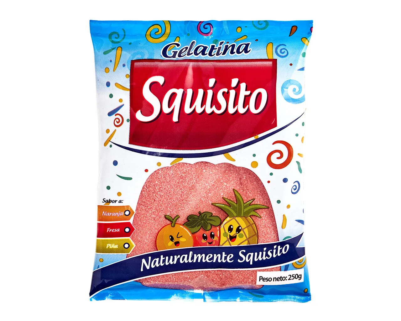 Mezcla en polvo de sabores frutales como fresa, naranja y piña, con colores vibrantes que, al hidratarse, forma un gel firme, brillante y de textura suave. Presenta excelente estabilidad y apariencia en moldes y porciones. Ideal para postres y aplicaciones de repostería o catering, aportando sabor agradable, frescura y atractivo visual en múltiples preparaciones dulces.